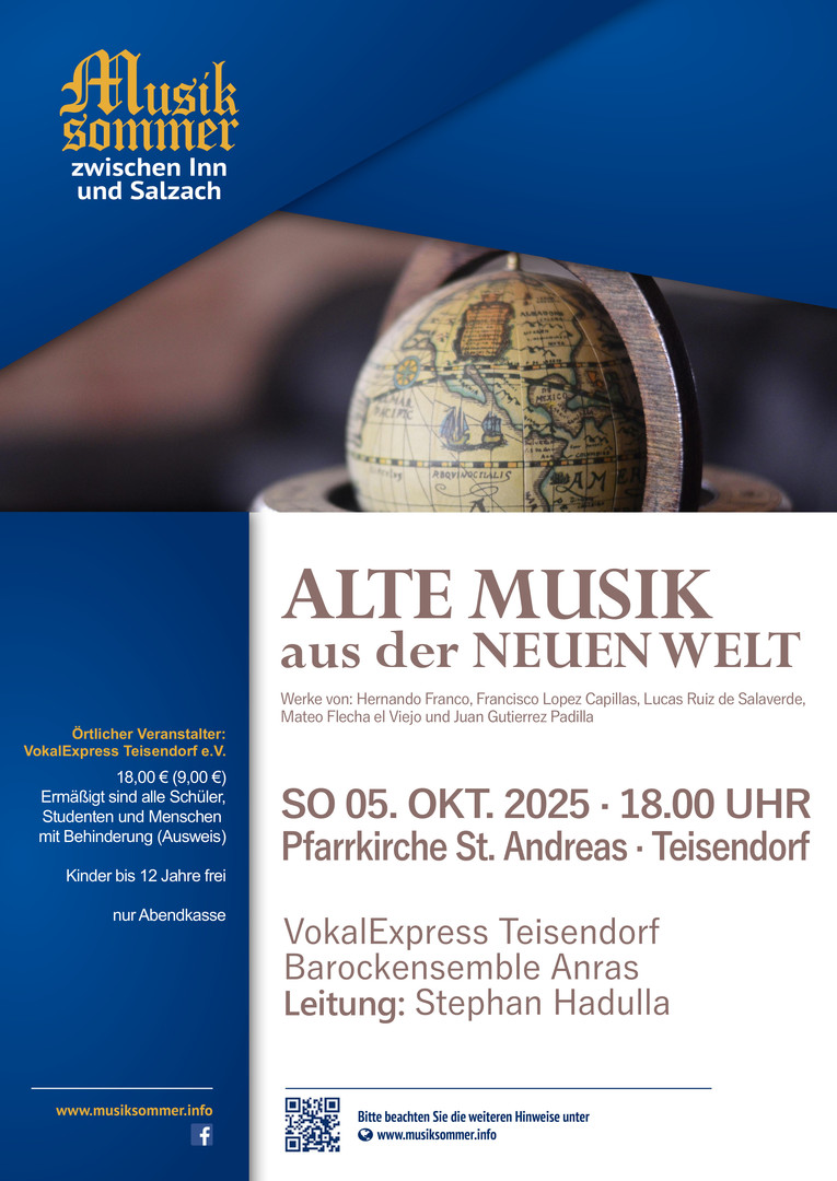 Pfarrkirche St. Andreas, Teisendorf im Rahmen des Musiksommers zwischen Inn und Salzach - mit freundlicher Unterstützung durch das Bayrische Staatsministerium für Wissenschaft und Kunst
